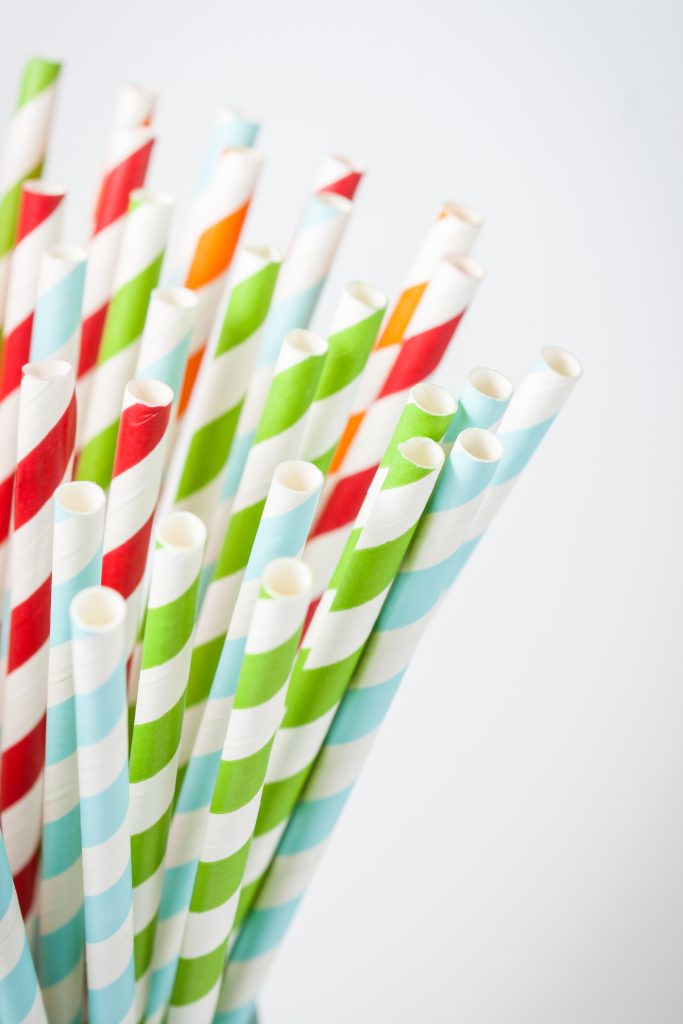 Vasos y pajitas de colores, listos para servir granizados con estilo.